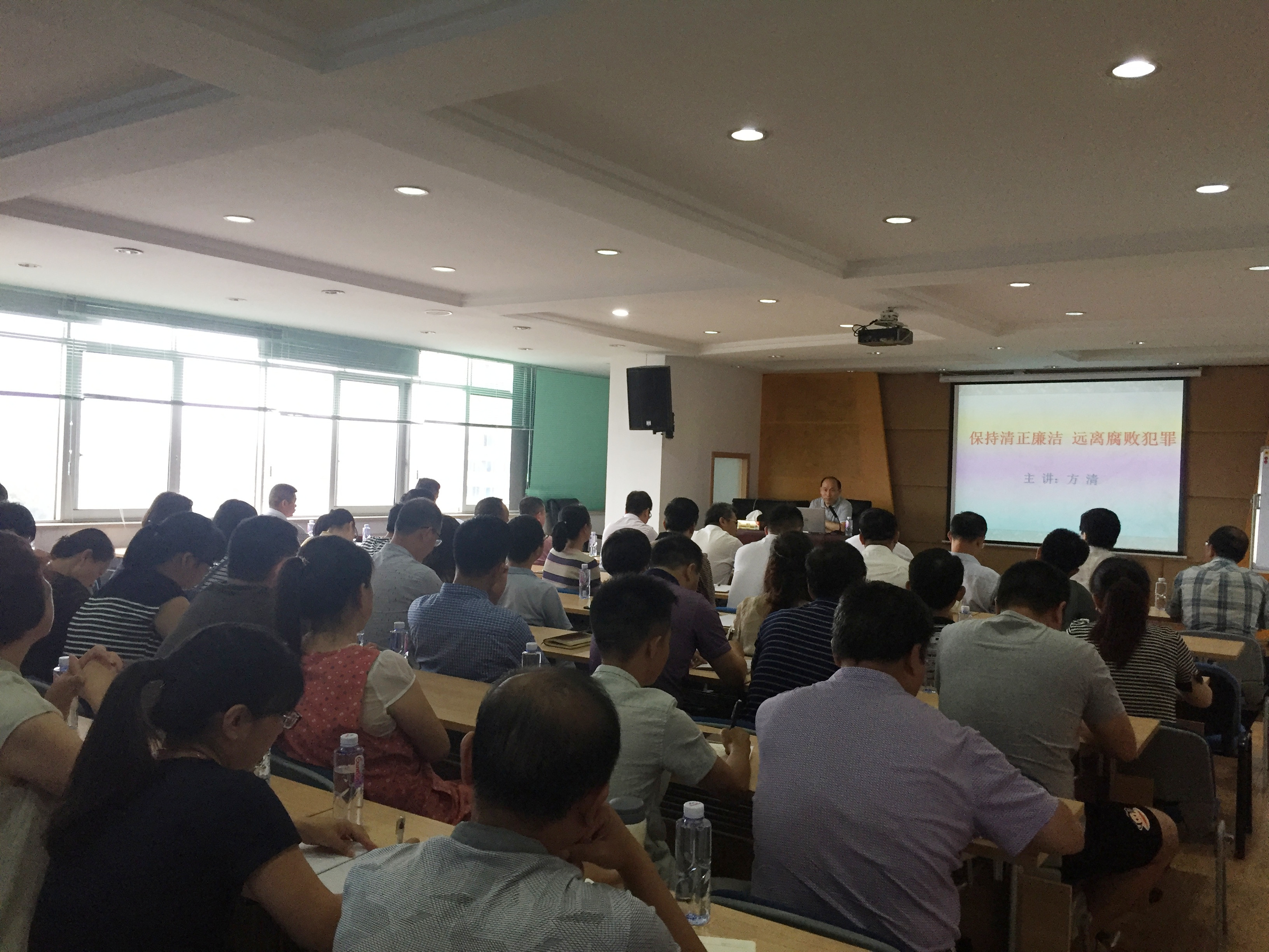 方清以“保持清正廉潔 遠(yuǎn)離職務(wù)犯罪”為題,通過以案說法,以案釋法,以案施教的方式,對(duì)職務(wù)犯罪的形式、特點(diǎn)、預(yù)防及有關(guān)反腐文件精神做了深入的剖析和講解。