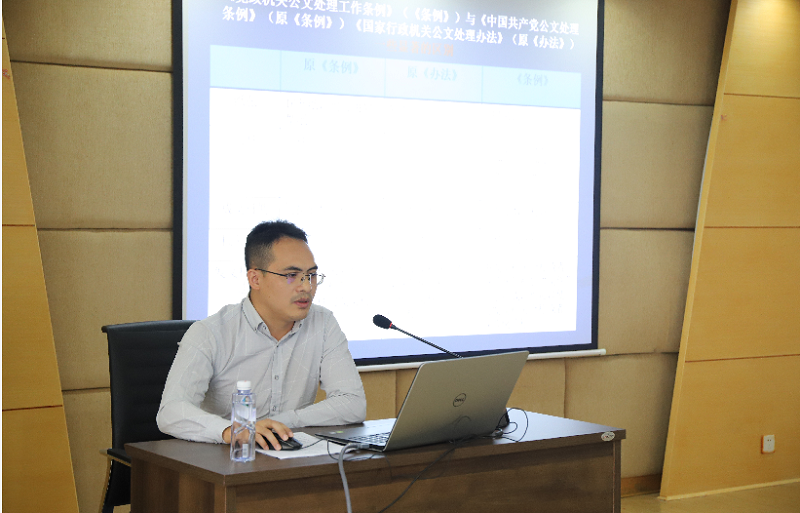 在為期半天的專題輔導中,王家華從公文定義、文種使用范圍、行文規(guī)則的解讀、公文格式規(guī)范、公文常見錯誤等5個方面,依托豐富的實際案例,通過生動細致的講解為與會人員就怎樣寫好一篇表述準確、格式規(guī)范、內(nèi)容完整的公文給予了詳細地指導。