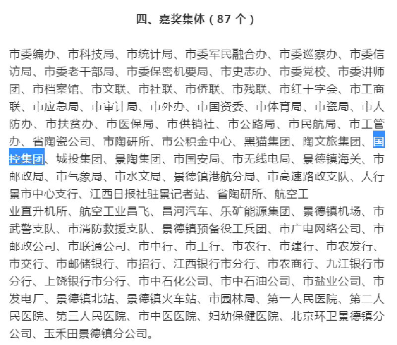 在此次表彰決定中,國控集團榮獲嘉獎集體。國控集團陳望賢、林莉榮獲個人二等功,喻瑤、劉培靖等同志受到通報嘉獎。