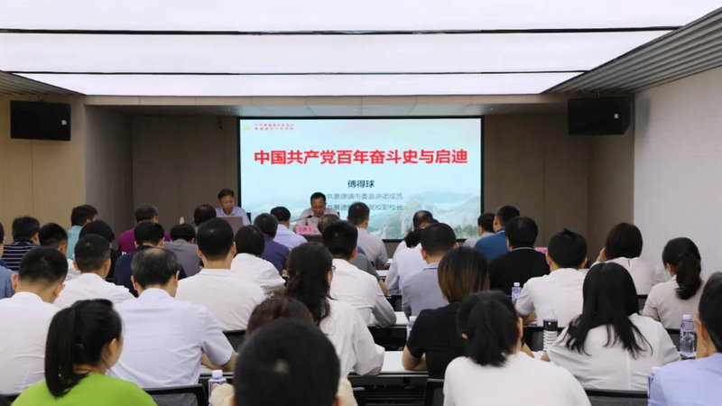 6月15日上午,市國控集團邀請市委宣講團成員、市委黨校副校長、市行政學院副院長傅得球同志作黨史學習教育專題講座。市國資委黨委委員、副主任、市國控集團轉型發(fā)展工作領導小組辦公室主任吳雄飛等集團領導班子、全體中層干部聆聽講座。