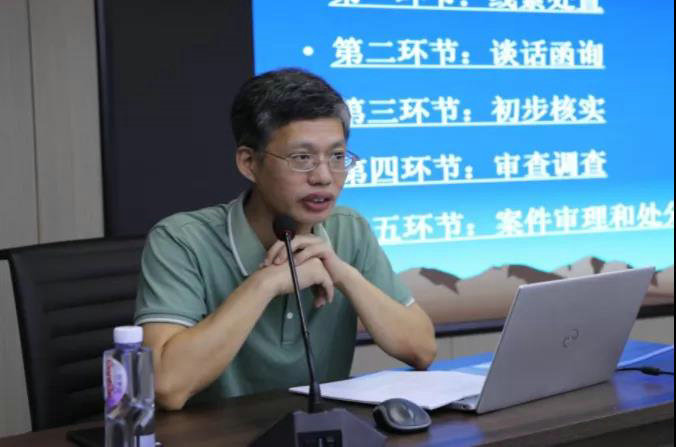 市紀(jì)委市監(jiān)委第三監(jiān)督檢查室主任石軍雄以《從“受理”到“處理”違紀(jì)黨員的“紀(jì)委之旅”》為題,從線索處置、談話函詢、初步核實、審查調(diào)查、案件審理和處分執(zhí)行五個環(huán)節(jié)系統(tǒng)授課,用通俗易懂的語言和實例講解專業(yè)的紀(jì)檢理論知識。