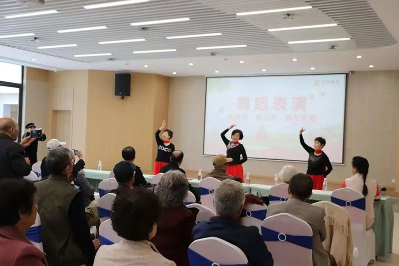 除了老年大學(xué)詩(shī)詞社成員,還吸引了社區(qū)的老人觀演。三人共同表演舞蹈,現(xiàn)場(chǎng)贊不絕口,掌聲絡(luò)繹不絕。