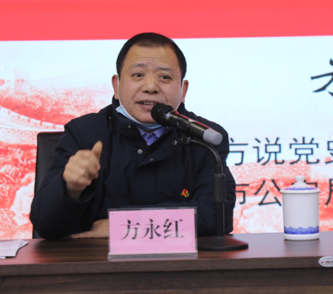 1月5日下午,市國控集團(tuán)學(xué)習(xí)貫徹黨的二十大精神宣講報(bào)告會(huì)舉行。市委宣講團(tuán)宣講員、老方說黨史宣講團(tuán)名譽(yù)團(tuán)長、市公安局三級高級警長方永紅同志作宣講報(bào)告,集團(tuán)黨委書記、董事長余笑兵主持報(bào)告會(huì),集團(tuán)領(lǐng)導(dǎo)班子成員、公司各部門負(fù)責(zé)人、各子公司主要負(fù)責(zé)人和各基層黨組織書記,共計(jì)40余人參加會(huì)議。