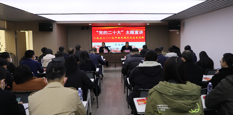 報(bào)告會(huì)上,方永紅首先簡要梳理了黨的二十大報(bào)告的邏輯關(guān)系,闡明了報(bào)告是我們黨對改革發(fā)展穩(wěn)定、內(nèi)政外交國防、治黨治國治軍的科學(xué)頂層設(shè)計(jì),繼而結(jié)合世界現(xiàn)代化史、中國近現(xiàn)代史、中共黨史以及新聞熱點(diǎn),對怎樣理解報(bào)告提出的中國式現(xiàn)代化做了分享交流。同時(shí)著重分析了中國式現(xiàn)代化的特點(diǎn)、本質(zhì)要求和前進(jìn)道路上要牢牢把握的五項(xiàng)原則,號召受眾深刻領(lǐng)悟“兩個(gè)確立”的決定性意義,把思想和行動(dòng)統(tǒng)一到黨中央的各項(xiàng)決策部署上來,在各自工作崗位上踐行習(xí)近平新時(shí)代中國特色社會(huì)主義思想。