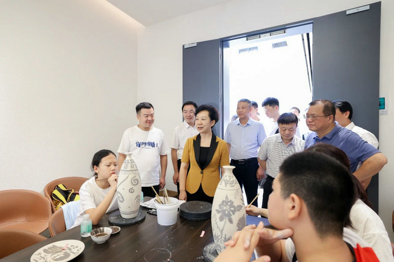 景德鎮(zhèn)藝美產(chǎn)業(yè)園項(xiàng)目以“陶瓷文化+”為核心,集藝術(shù)教育、研究、創(chuàng)作、交流、體驗(yàn)及高端美展為一體。胡雪梅來到該項(xiàng)目現(xiàn)場,參觀了展陳展覽,聽取了作品創(chuàng)意、設(shè)計(jì)等介紹,并考察了研學(xué)基地情況。她叮囑有關(guān)平臺公司要樹立文創(chuàng)品牌,明晰市場定位,盡快實(shí)現(xiàn)優(yōu)質(zhì)產(chǎn)品的量產(chǎn)。
