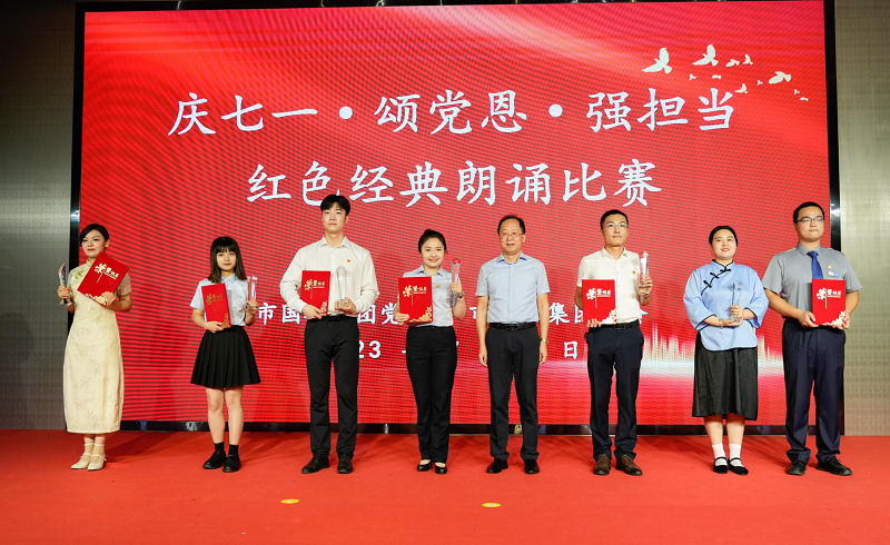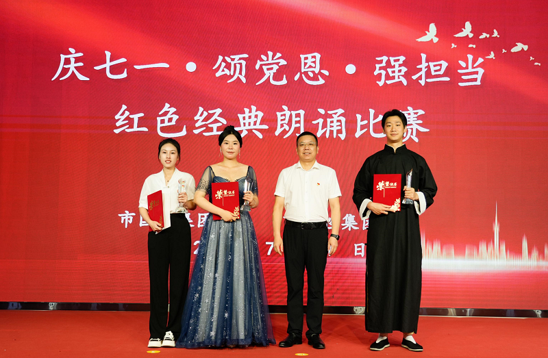 為深入學(xué)習(xí)貫徹習(xí)近平新時(shí)代中國(guó)特色社會(huì)主義思想,持續(xù)學(xué)習(xí)宣傳貫徹黨的二十大精神,引導(dǎo)全體黨員、干部職工傳承紅色基因、賡續(xù)紅色血脈,以實(shí)際行動(dòng)為中國(guó)共產(chǎn)黨102周歲生日深情獻(xiàn)禮,7月1日,市國(guó)控集團(tuán)黨委、市國(guó)控集團(tuán)工會(huì)在陶博城聯(lián)合舉辦了“慶七一.頌黨恩.強(qiáng)擔(dān)當(dāng)”紅色經(jīng)典誦讀比賽。來自集團(tuán)及各下屬子公司12只代表隊(duì)共計(jì)29名選手進(jìn)行了精彩比拼,集團(tuán)領(lǐng)導(dǎo)班子成員、高管,全體黨員、干部職工共計(jì)300余人全程觀看比賽。